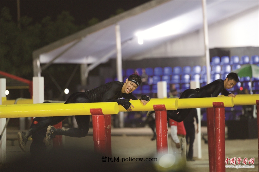 极限越障科目开始时,夜间气温下降,考验着队员们的耐力和灵敏度。即便手在适应场地时破皮受损,新疆队队员冯志伟仍旧忍着疼痛和队友一鼓作气,迅速完成爬人梯、越绳索、过独木桥等项目。