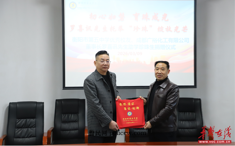 成都广裕化工有限公司董事长、衡阳市五中优秀校友罗喜讯重返母校,以实际行动助力学子成长。校党委书记蒋受佐、校长刘一坚等学校相关负责人出席仪式,共同见证这场爱心活动。