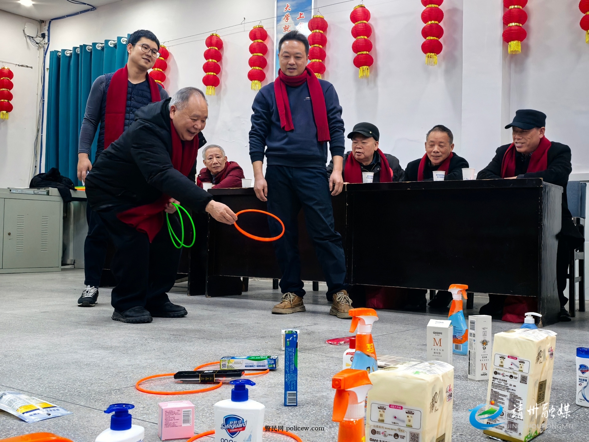趣味竞技环节亮点纷呈,猜灯谜、“你划我猜”、套圈、筷子夹乒乓球等项目兼具趣味与参与性。猜灯谜区,百余条涵盖党史知识、民俗常识、新春祝福的灯谜纸条挂满长廊,老干部们三五成群,或驻足凝思,或低声探讨解谜;“你划我猜”中,各组搭档心有灵犀,比划者肢体生动传神,猜题者反应敏捷,现场欢声笑语不断;套圈和筷子夹乒乓球项目里,老干部们全神贯注参与,即便偶有失误也笑意不减,展现出乐观豁达的心态。