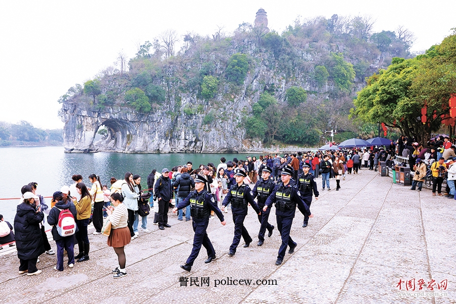 春节假期,桂林各大景区游人如织。桂林市公安局以平安护航、服务游客为主线,以旅游警务为抓手,全警在岗、全域巡防、全程守护,全力守护景区秩序与游客安全。