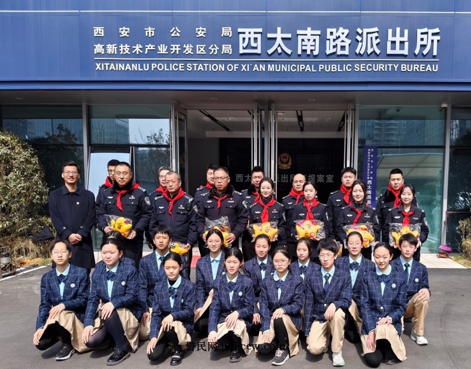 在第63个学雷锋纪念日,西太南路派出所邀请高新七初党、团、队员代表走进警营,学生为民警系红领巾、送祝福,近距离参观警务工作、体验警用装备,深化警校共建,让雷锋精神在警营与校园间传递。
