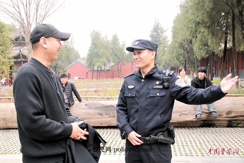 “警察同志,快帮帮我们,我家孩子找不到了!”9时30分许,一对神色慌张的年轻夫妇向我求助。在了解孩子的衣着样貌后,我立即与景区管理部门联系,通过景区广播播报寻人启事,并让同事分组严守各个出口,防止孩子离开景区。随后,我和这对夫妇沿着游览的路线寻找。在白马寺止语茶舍外的竹林旁,我看到一群人在围观拍照,那里常有小猫出现,是景区的一个网红“打卡点”。穿过人流,我们找到了正蹲在篱笆外看小猫玩耍的孩子,年轻夫妇与孩子开心团聚。见到孩子安全无恙,我这才放心离开,继续在景区巡逻。