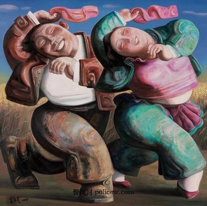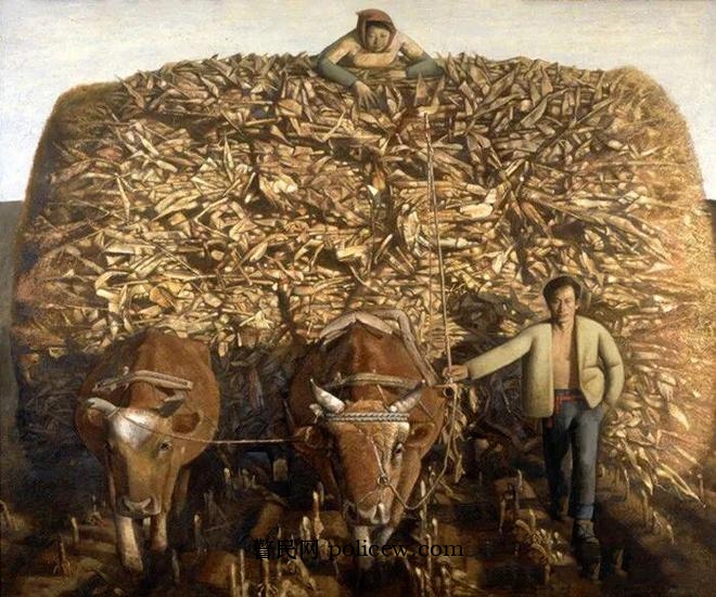 宫立龙、王光伟《收苞米秸子》1992年 150cm×186cm 油画 中国美术馆藏
