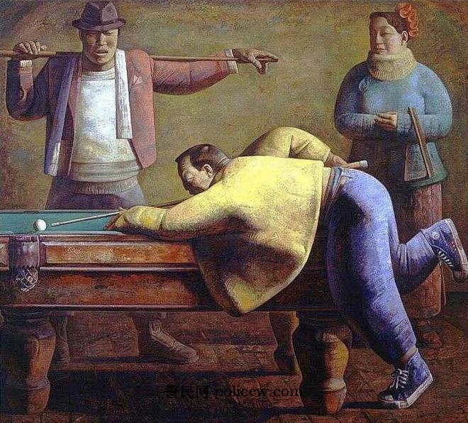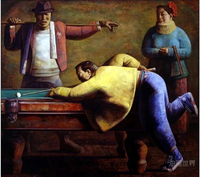 打台球, 布面油画, 170X190cm,1994