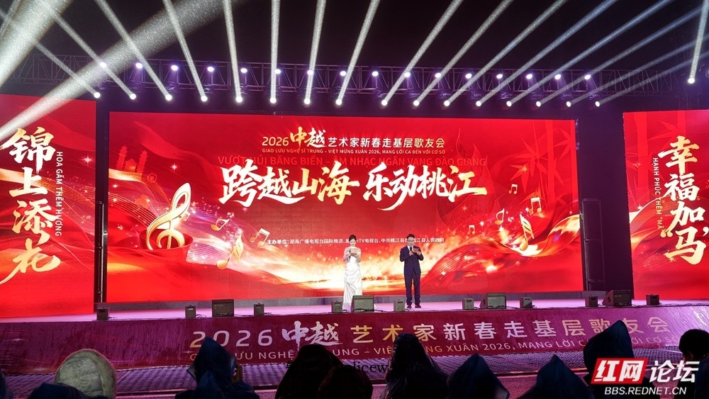 为营造欢乐祥和、热烈浓郁的新春文化氛围,进一步丰富基层群众精神文化生活,近日,由中越艺术家及湖南广播电视台、越南胡志明电视台(HTV)联合发起的“跨越山海 乐动桃江”新春走基层歌友会在益阳市桃江县桃花江竹海景区精彩上演。