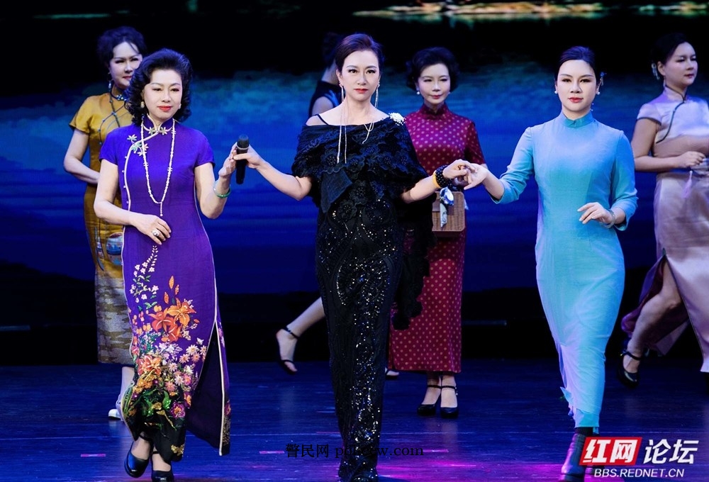 本次晚会中,由湘超旗袍模特艺术团倾情演绎的旗袍秀《明月千里寄相思》成为全场瞩目的焦点。舞台首次汇聚了从“50后”到“00后”四代队员同台竞技。50、60后的沉稳大气,70、80后的优雅知性,与90、00后的青春灵动在舞台上交相辉映,勾勒出一幅生动的东方女性群像。这不仅是一场服饰秀,更是中华服饰文化在代际间绵延流淌的最好见证。