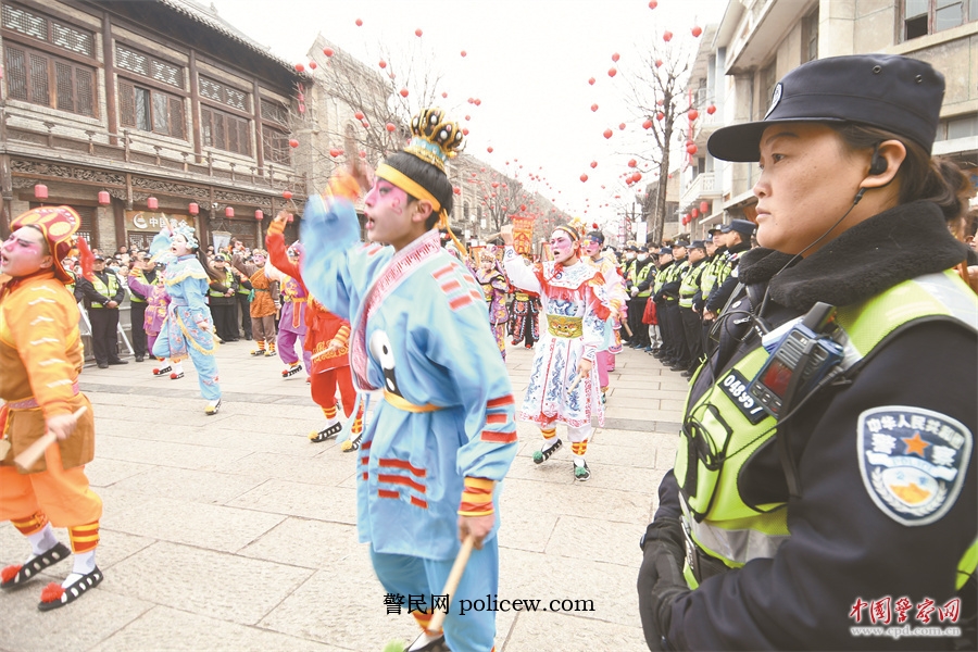 “大家往两侧靠一靠,给巡游队伍留出通道。”一名民警轻声提醒着踮脚拍照的观众。演员翻转腾挪,鼓槌挥动有力,始终与观众保持安全距离。