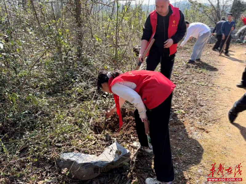 “坑要挖深一点,土要踩实,这样树苗的根才能扎得稳,成活率才高。”经验丰富的老同志一边干活,一边向身边的年轻干部传授着植树经验。经过一上午的辛勤劳作,新栽种的树苗在潘家村的道路两旁和闲置坡地上“安家落户”。一株株新绿迎风挺立,错落有致,在和煦的春光中展现出蓬勃生机,将原本空旷的土地装点得绿意盎然。