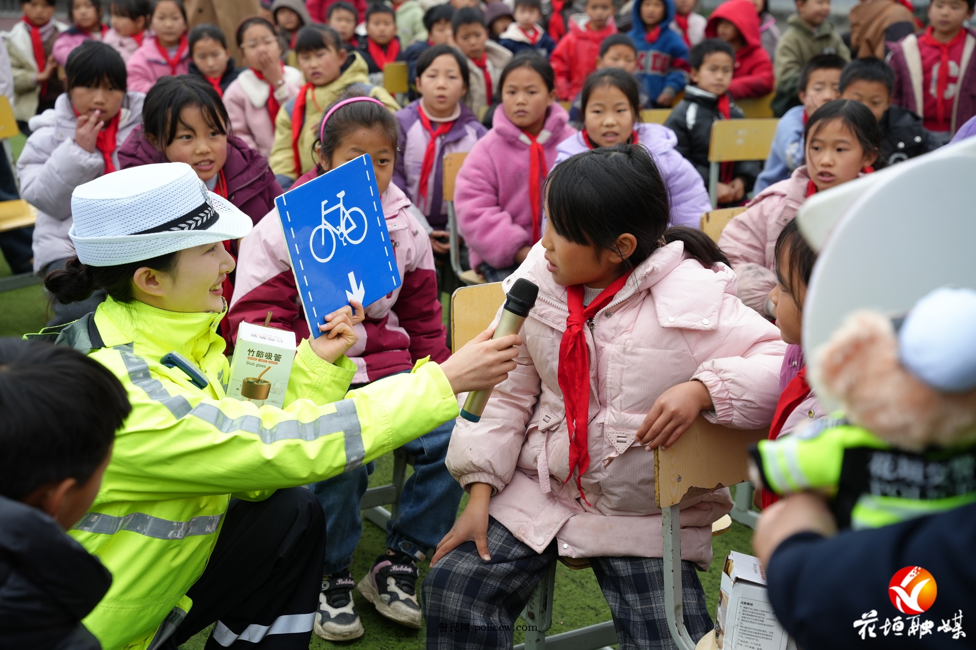 为巩固学习效果,现场特别设置了趣味知识问答环节。围绕“驾乘摩托车、电动车为何要佩戴安全头盔”“遭遇交通事故如何正确应对”等热点问题,民辅警与学生展开热烈互动。现场气氛活跃,不少学生争先恐后地分享自己掌握的安全小技巧,在轻松愉悦的氛围中将交通安全知识入脑入心。