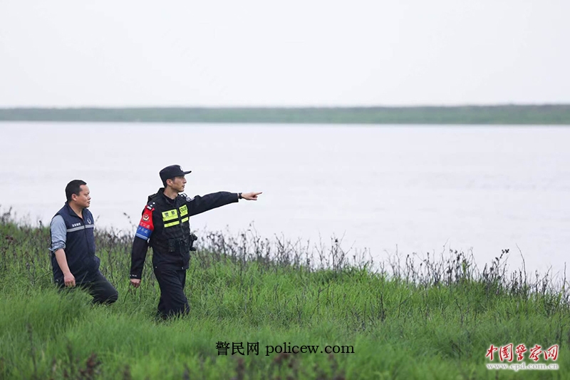 近日,进贤县公安局民警联合生态义警在鄱阳湖畔巡逻。万鹏军 摄