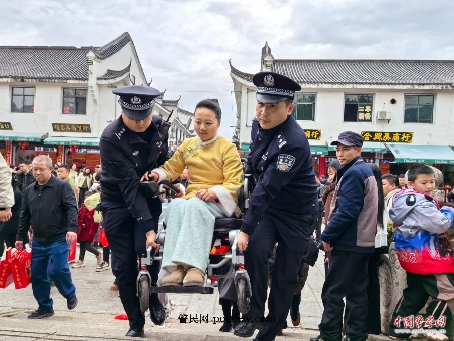 衡阳市公安局南岳分局民警为行动不便的游客提供贴心服务。洪芬 摄(资料图片)