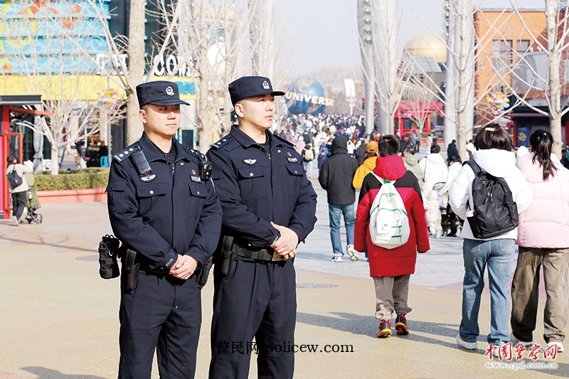 近日,北京市公安局通州分局民警在北京环球度假区执勤。石磊 摄