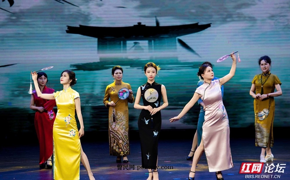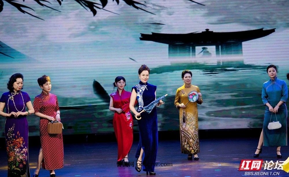 湘超旗袍模特艺术团惊艳长沙电视春晚。