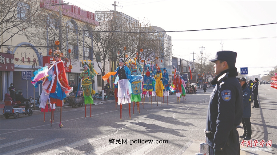 10时30分,巡游队伍行至镇区最为热闹的路段。商铺门前人头攒动,鼓点愈发密集。高处瞭望警力实时观察人流变化,地面民警通过手势与喊话,引导群众分批移动,为演员腾出安全空间。