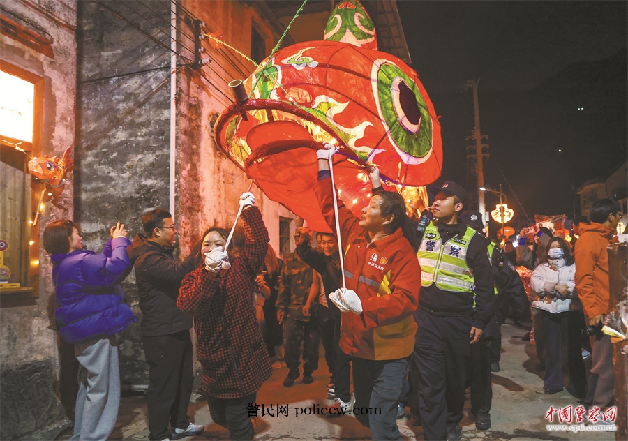 22时,随着最后一尾鱼灯游入“汪氏宗祠”,大批游客开始有序离场,喧闹了一天的古村渐渐安静下来。民警打着手电,开始最后一轮夜巡,检查有没有未熄灭的火源,提醒仍在收拾的群众注意防火防盗。传承六百年的鱼灯照亮了皖南山村,也映照着这群“守夜人”的初心。