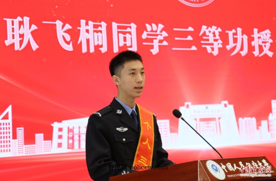 中国警察网讯 记者徐婷、实习记者雒少龙、实习生陈以昉报道:3月24日,中国人民公安大学举行仪式,为2024级犯罪学专业学生耿飞桐记个人三等功,表彰他在群众危急时刻挺身而出制止不法行为的感人之举。这是该校深入实施“英雄之路”铸魂育人工程,将英雄精神融入人才培养全过程的一次成果展示。