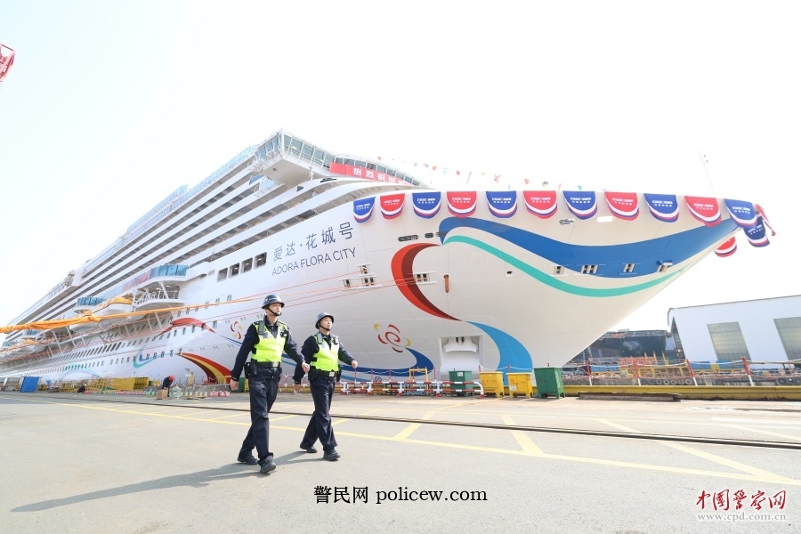 “爱达·花城号”建造施工是国家高端制造业重点项目工程。长航公安局上海分局主动担当作为,在施工建设关键节点,全力保障邮轮建造安全、有序推进。围绕邮轮出坞前后安保工作,上海分局紧扣主责主业,从“人、点、面”三个维度织密立体防控网络,民警深入一线排查走访,通过打防一体、矛盾联调、精准宣防等举措,守护施工人员生命财产安全。船厂警务室民警24小时驻守码头,高效处置各类安全隐患。宝山派出所通过“线上+线下”方式确保邮轮周边水域秩序平稳可控,通过对过往船舶信息和航行动态进行实时分析预警,做到“看得清、管得住”,动态调整巡防勤务,加大对周边水域的巡防频次和力度,提高见警率、管事率,确保船厂物资及在建邮轮安全。